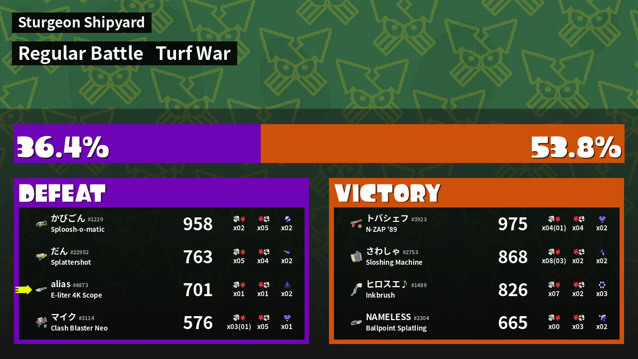 | Mode | Turf War - Regular Battle | ||