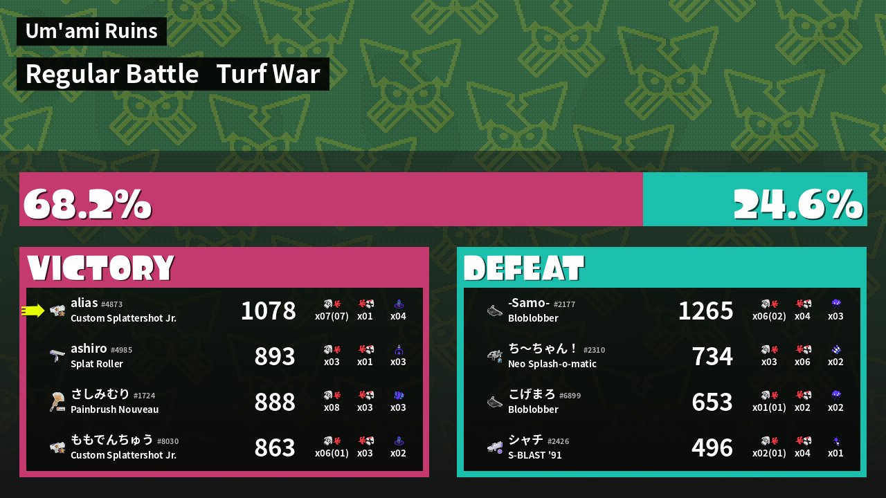 | Medals | #1 Turf Inker #1 Enemy-Base Inker #1 Super Jump Spot | ||