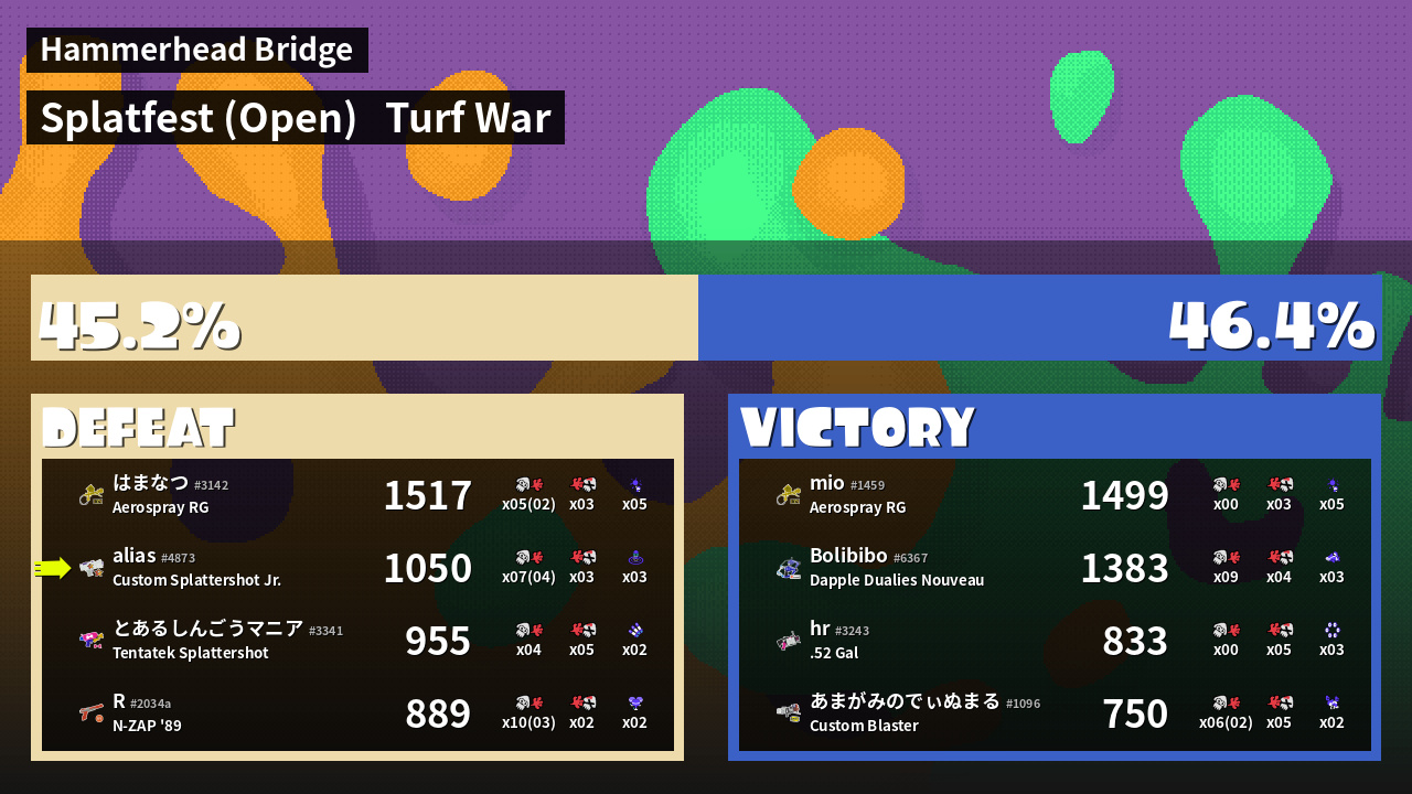 | Medals | #1 Enemy-Base Inker #1 Splat Assister #1 Wave Breaker User | ||