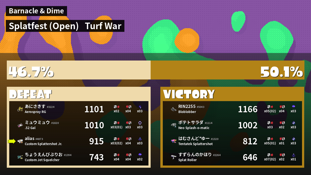 | Medals | #1 Splat Assister #1 Ink Consumer #1 Wave Breaker User | ||