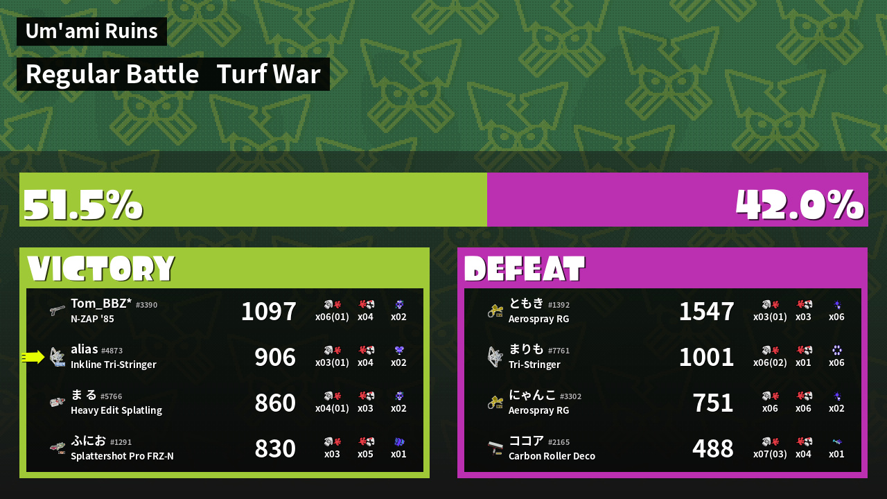 | Medals | #1 Super Jump Spot #1 Splat Assister #1 Super Chump User | ||