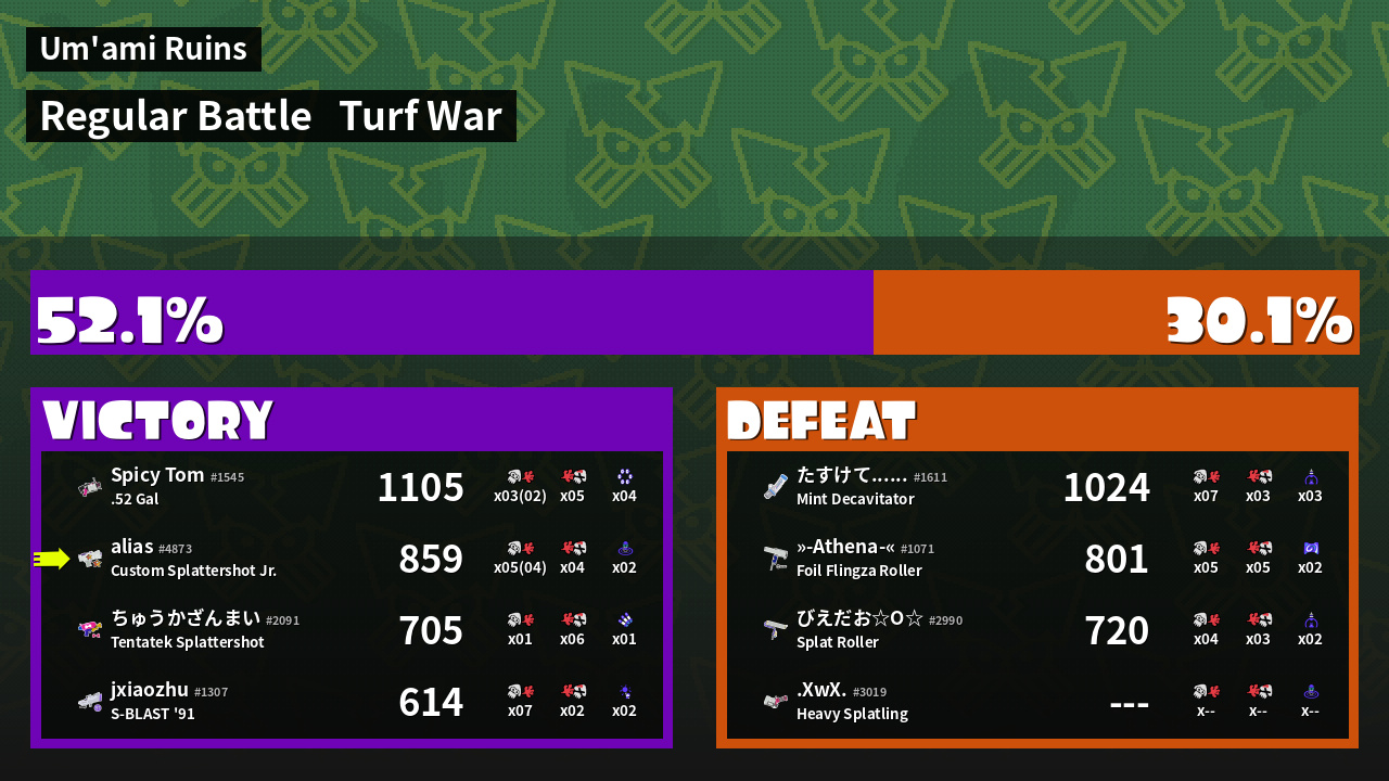 | Mode | Turf War - Regular Battle | ||