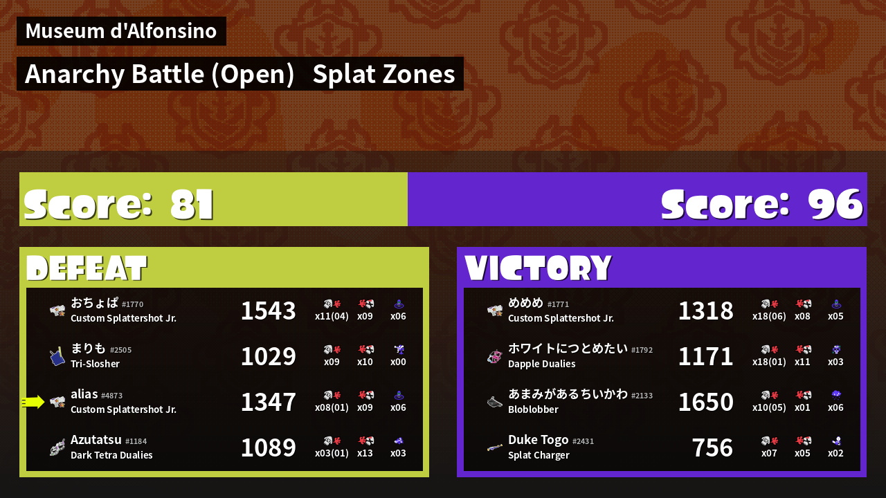 | Mode | Splat Zones - Anarchy Battle (Open) | ||