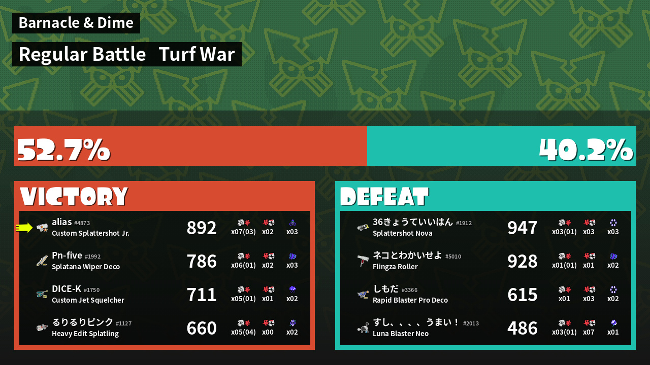 | Mode | Turf War - Regular Battle | ||