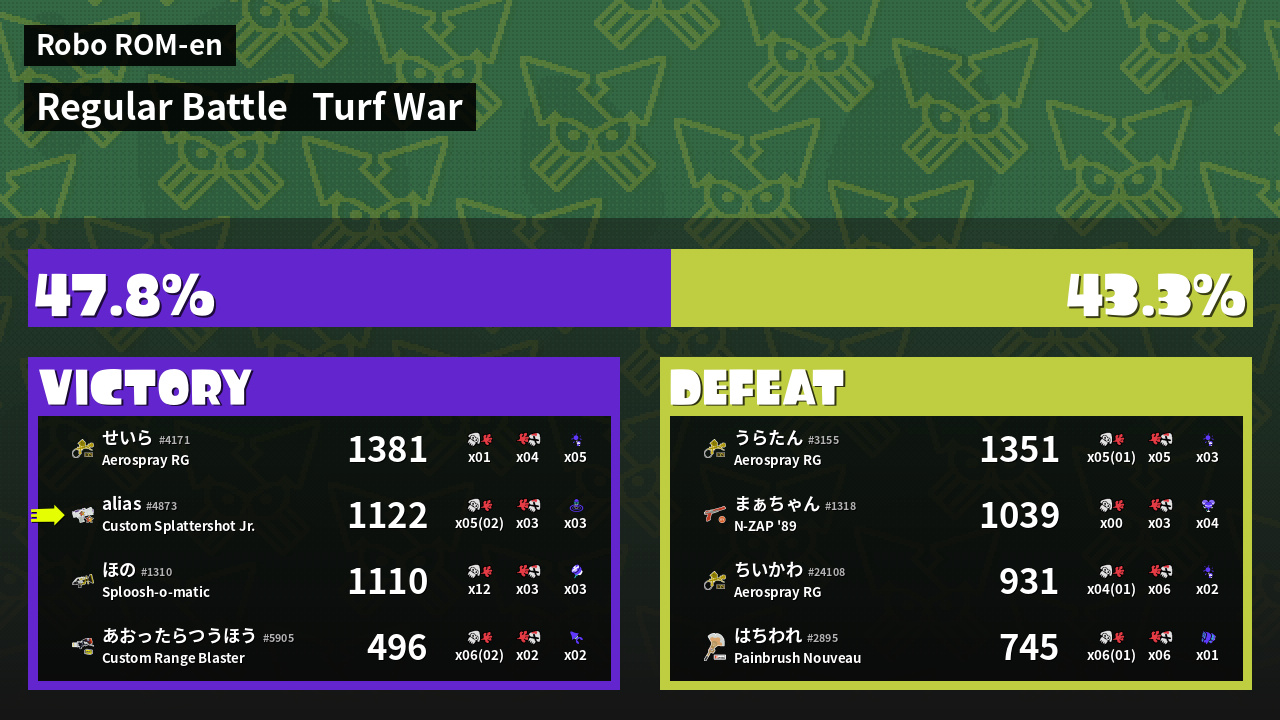 | Medals | #1 Splat Assister #1 Damage Taker #2 Turf Inker | ||