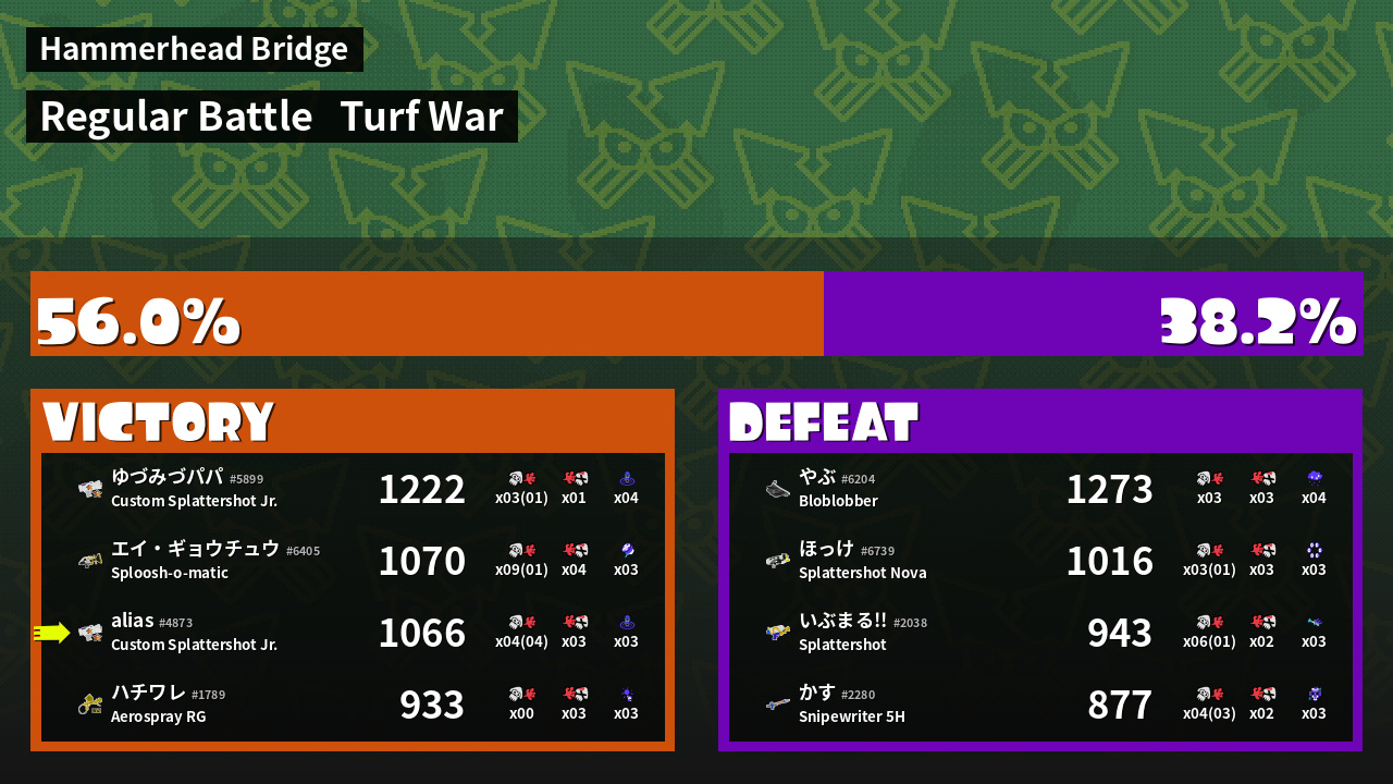 | Medals | #1 Splat Assister #1 Wave Breaker User #2 Overall Splatter | ||