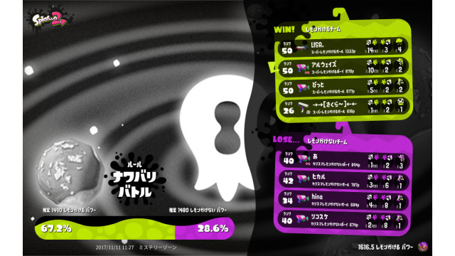 | Splatfest Power | 1,616.5 | |||||||||||||||||||||||||||||||
