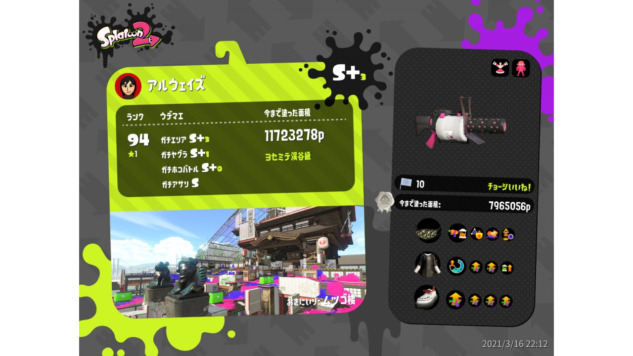 | Name | Weapon | Level | Rank | Inked | k+a/sp | k/d |