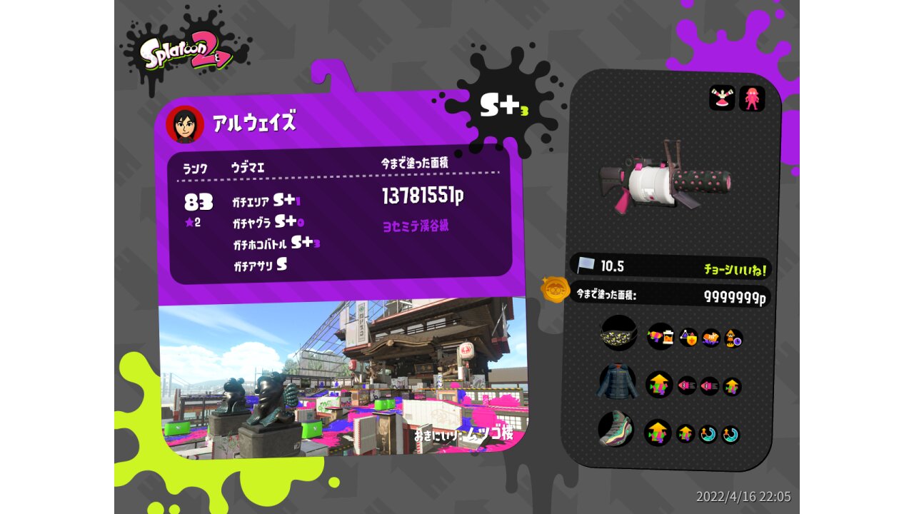 | Name | Weapon | Level | Rank | Inked | k+a/sp | k/d |