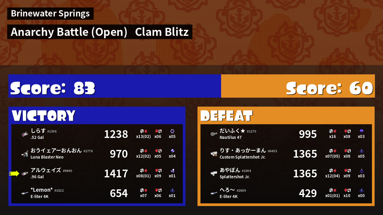 | Mode | Clam Blitz - Anarchy Battle (Open) | ||