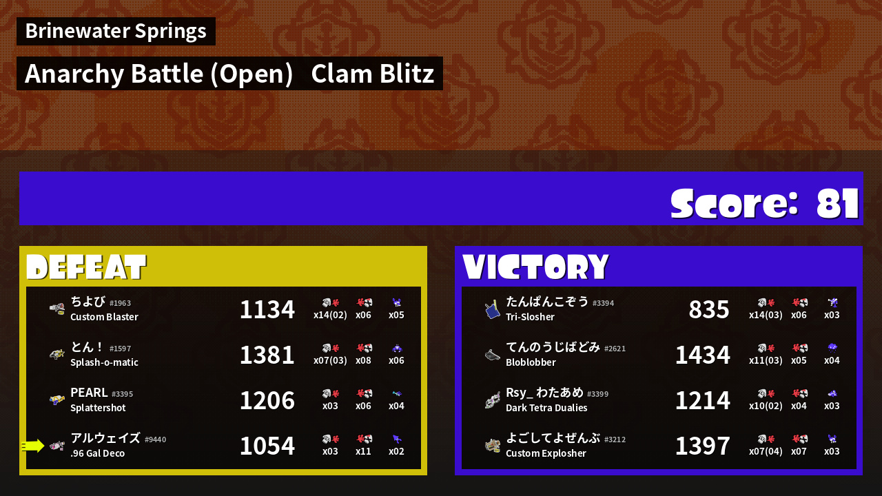 | Mode | Clam Blitz - Anarchy Battle (Open) | ||