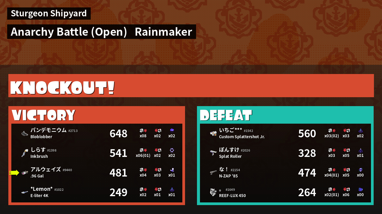 | Mode | Rainmaker - Anarchy Battle (Open) | ||
