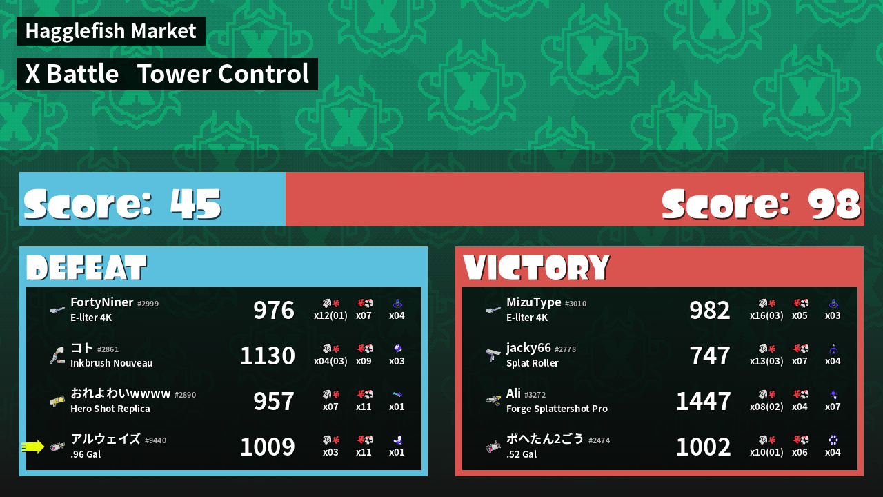 | Mode | Tower Control - X Battle | ||