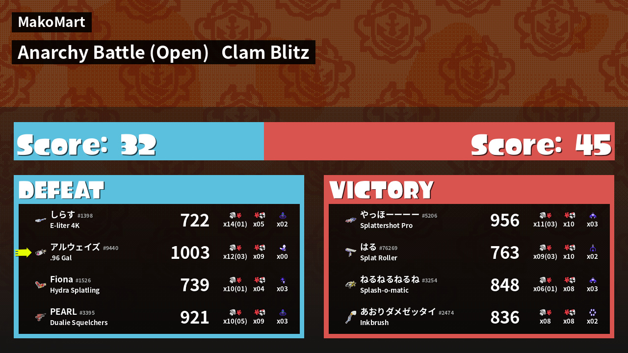 | Mode | Clam Blitz - Anarchy Battle (Open) | ||