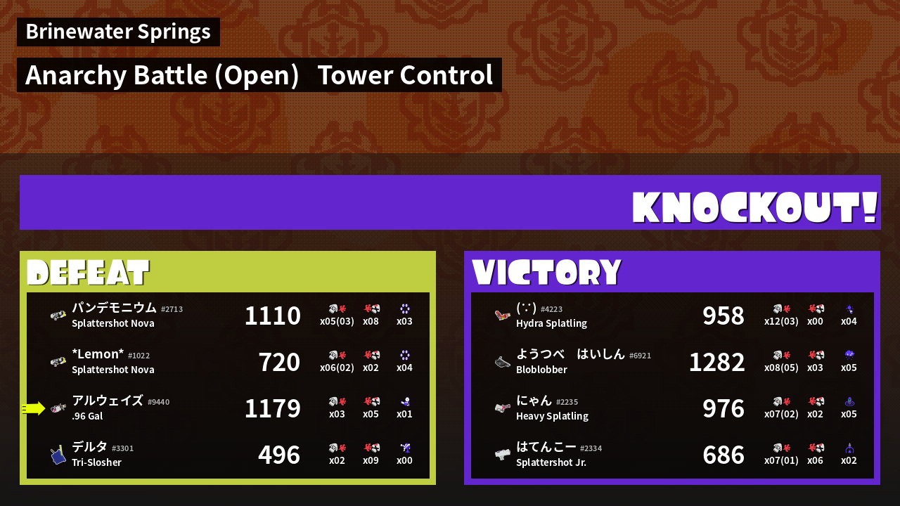| Mode | Tower Control - Anarchy Battle (Open) | ||