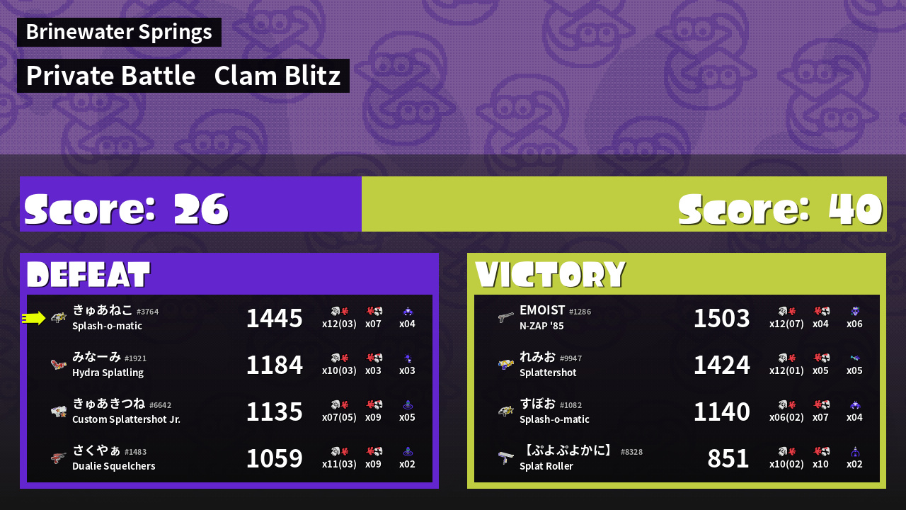 | Medals | #1 Overall Splatter #1 Turf Inker #1 Popular Target | ||