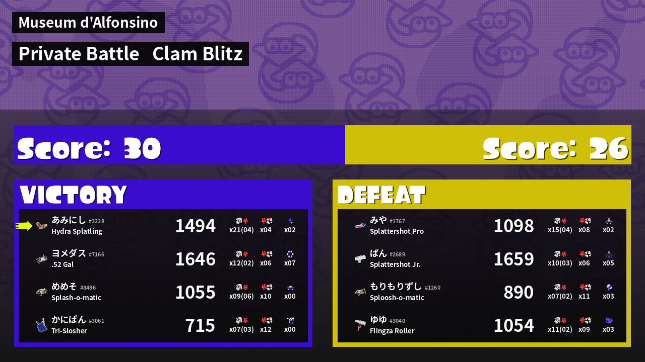 | Mode | Clam Blitz - Private Battle | ||
