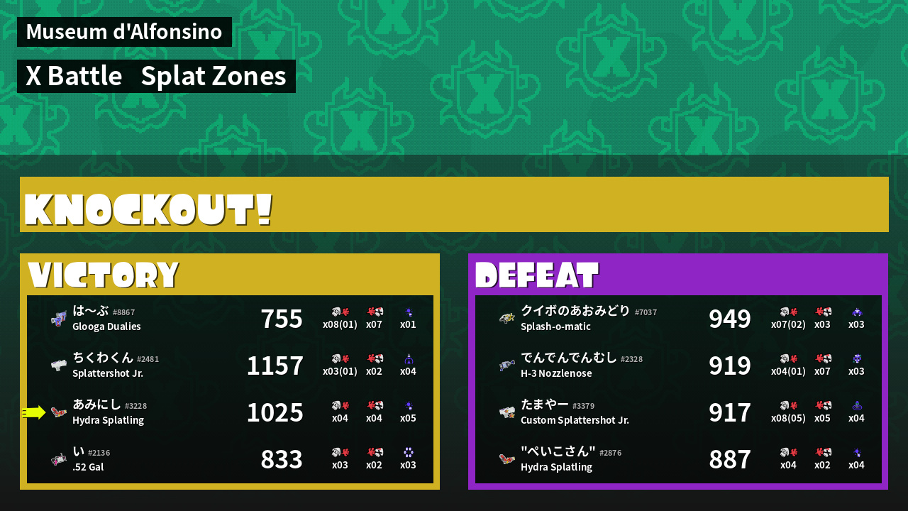| Mode | Splat Zones - X Battle | ||