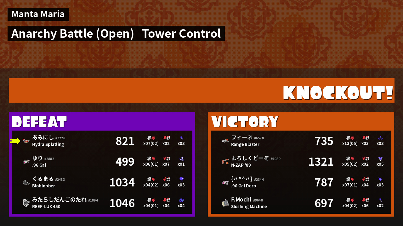 | Mode | Tower Control - Anarchy Battle (Open) | ||