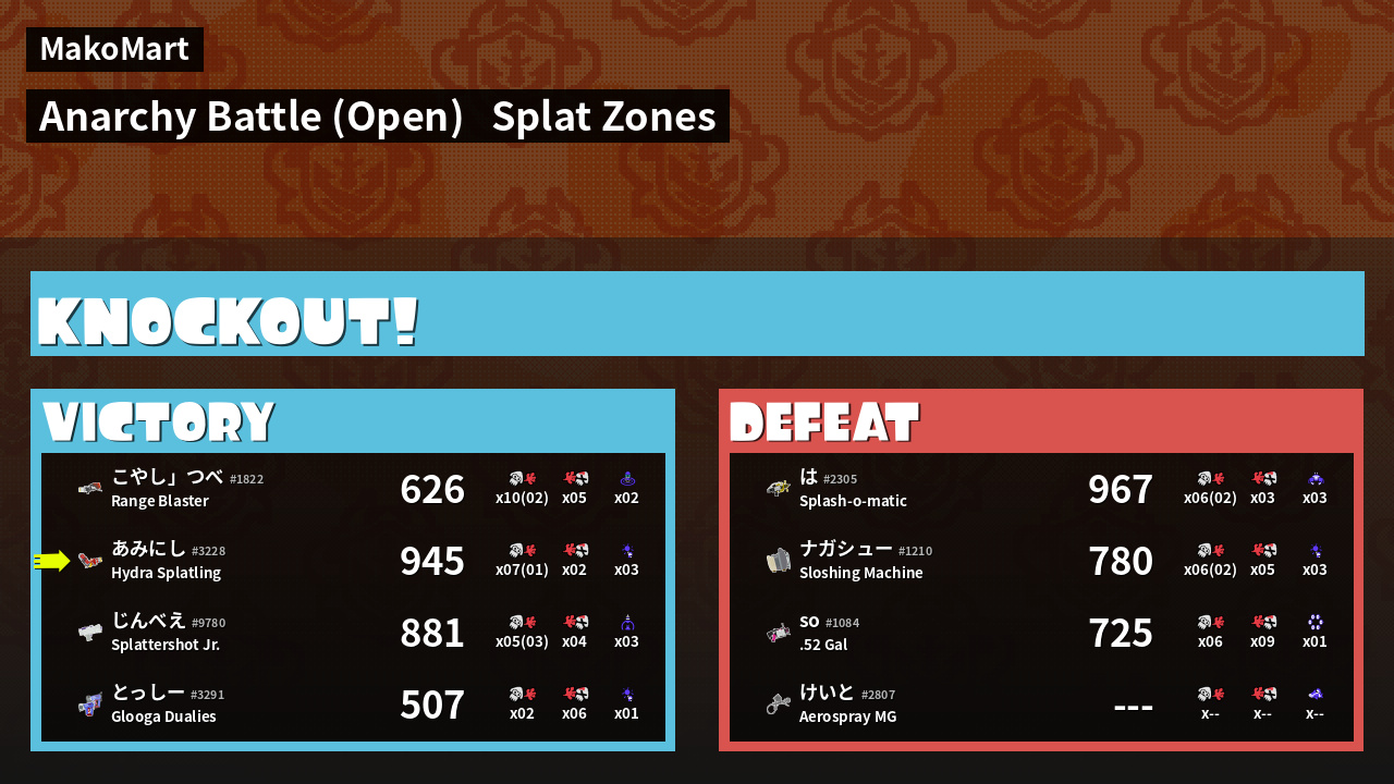 | Mode |    Splat Zones -   Anarchy Battle (Open) | ||