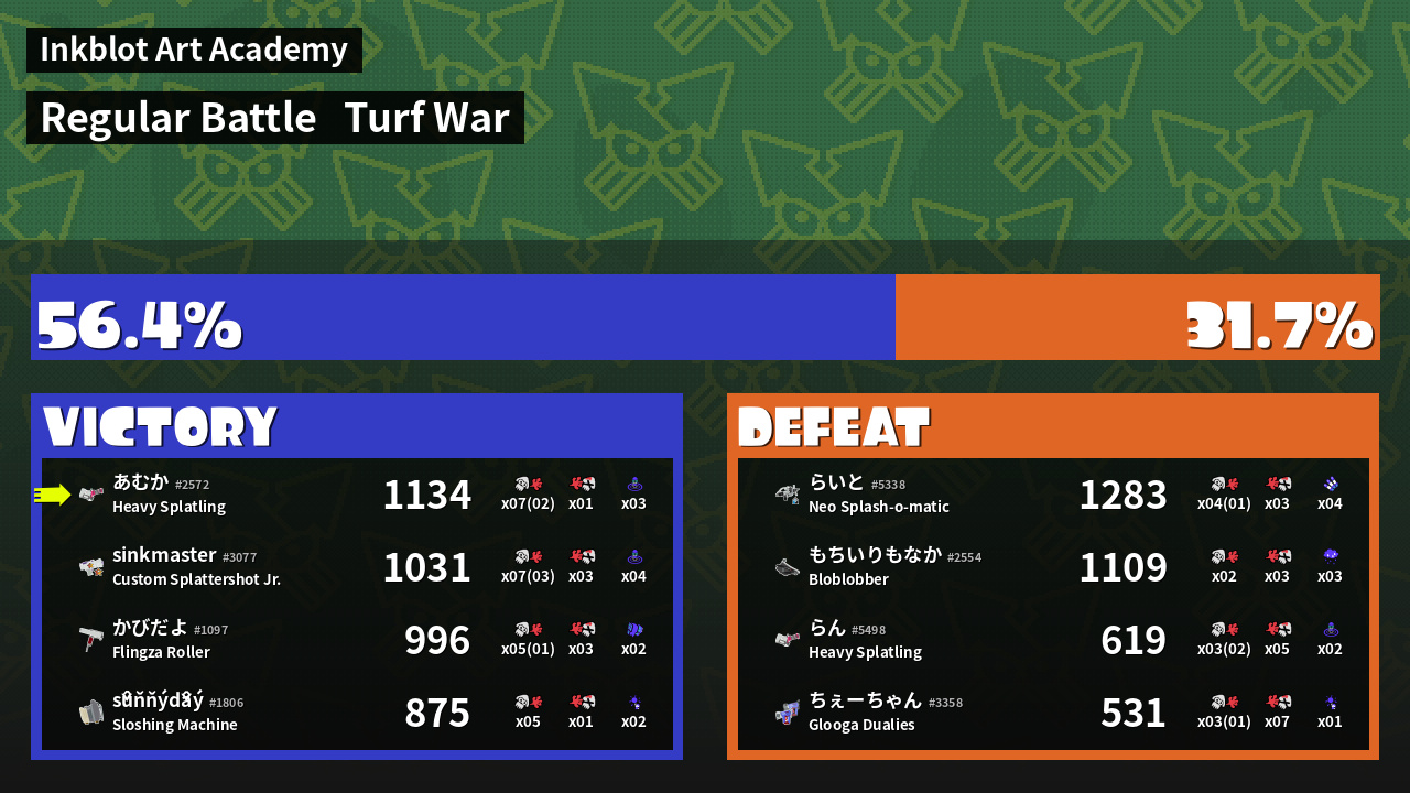 | Mode | Turf War - Regular Battle | ||