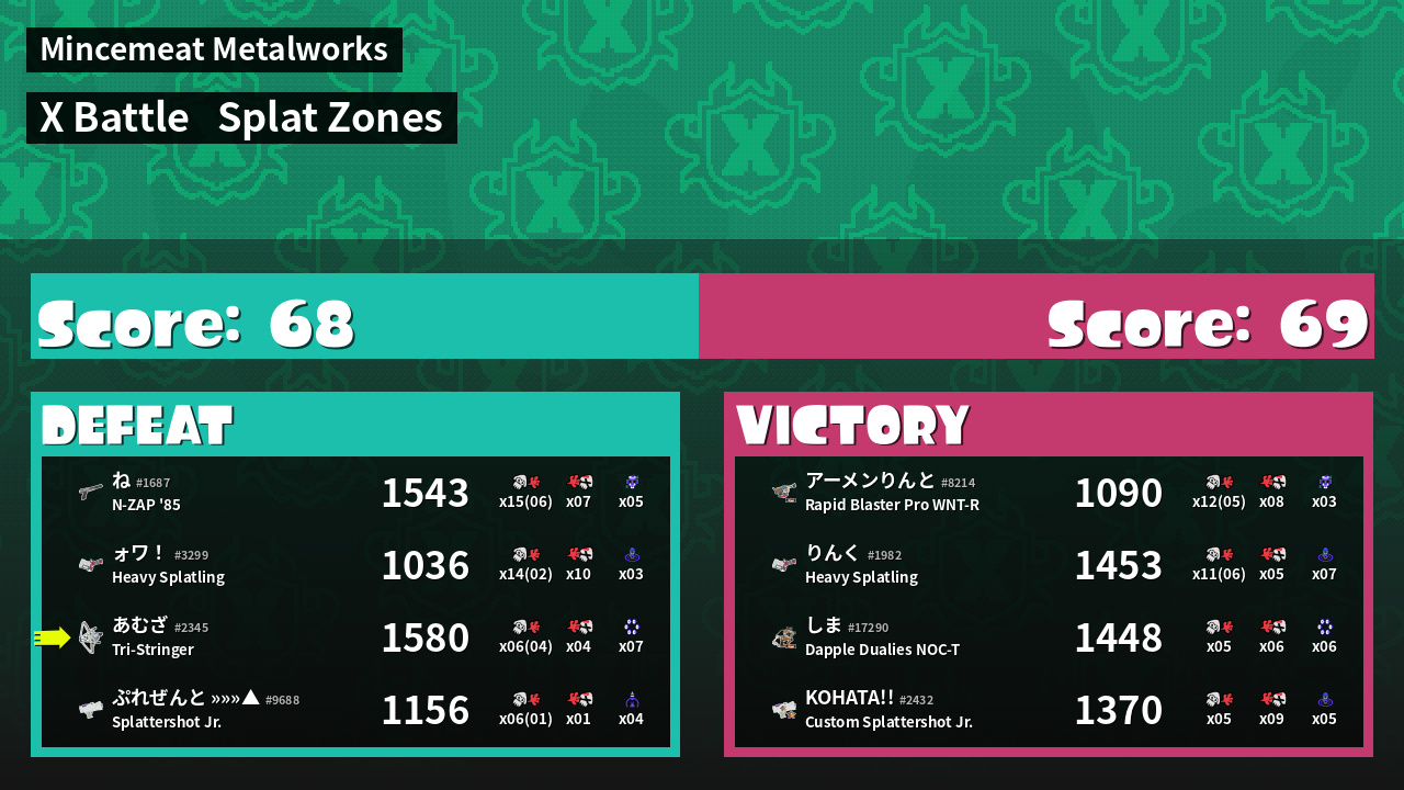| Medals | #1 Splat Zone Inker #1 Turf Inker #1 Splat Zone Hero | ||