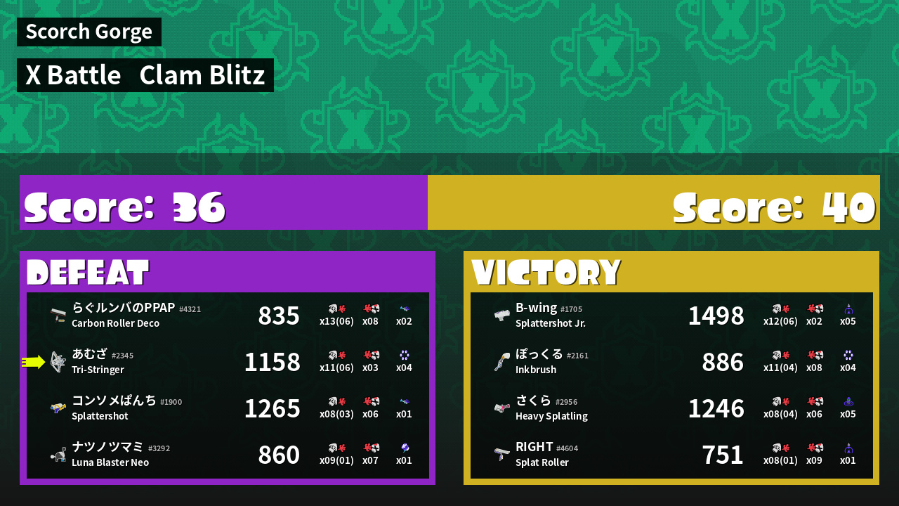 | Mode | Clam Blitz - X Battle | ||