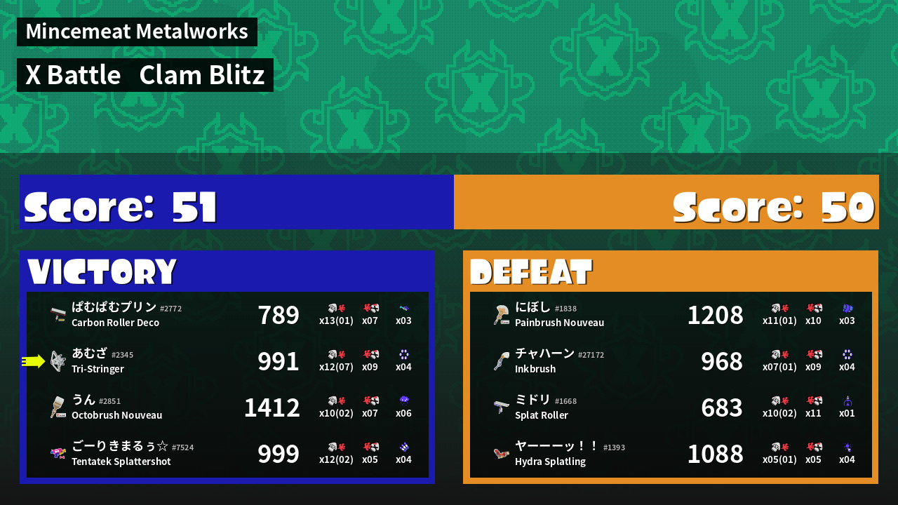 | Mode | Clam Blitz - X Battle | ||