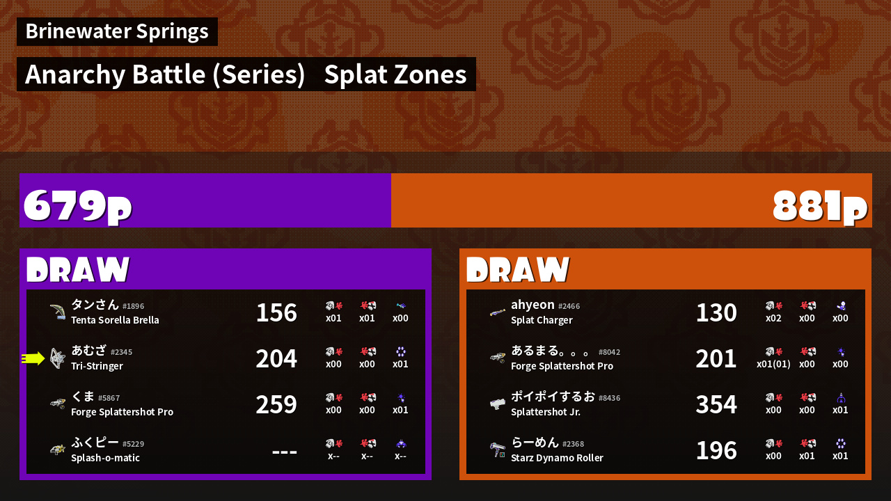 | Mode | Splat Zones - Anarchy Battle (Series) | ||
