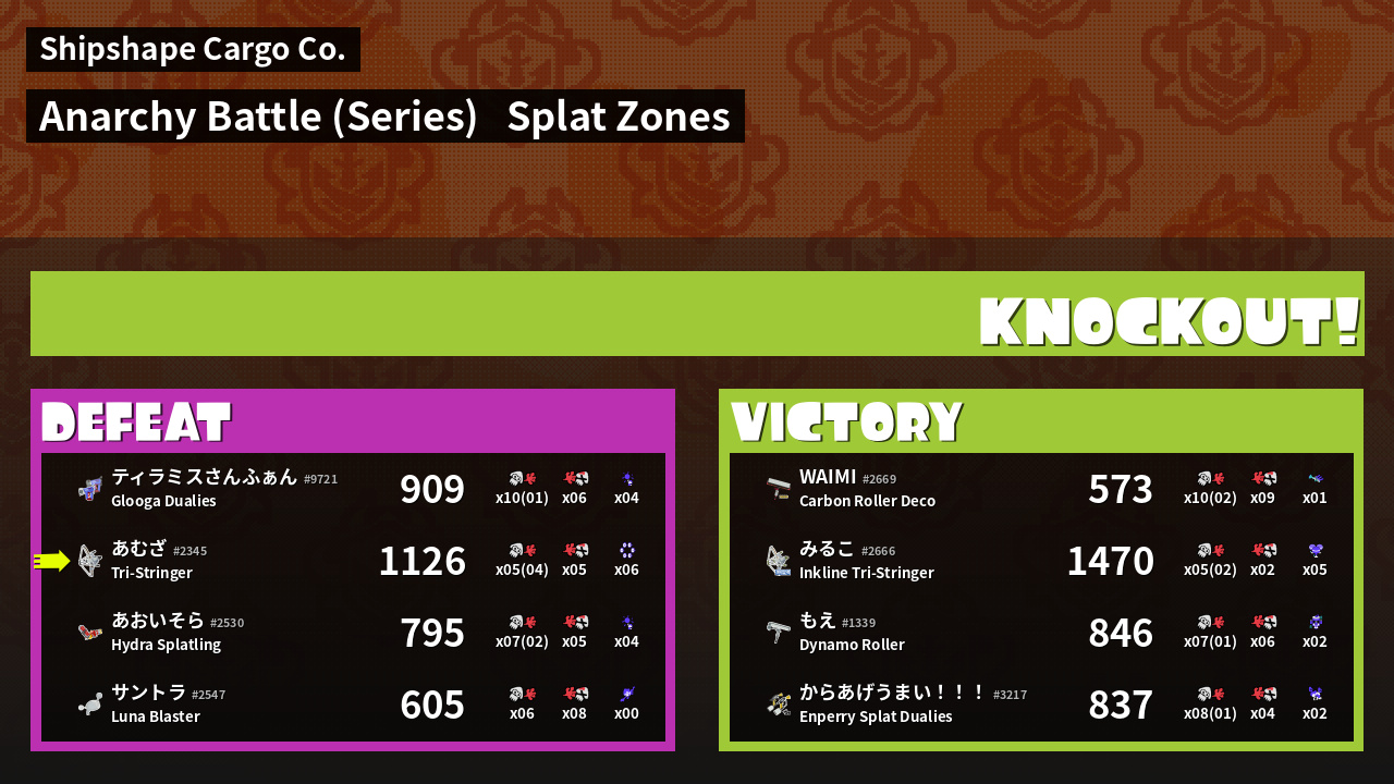 | Mode | Splat Zones - Anarchy Battle (Series) | ||