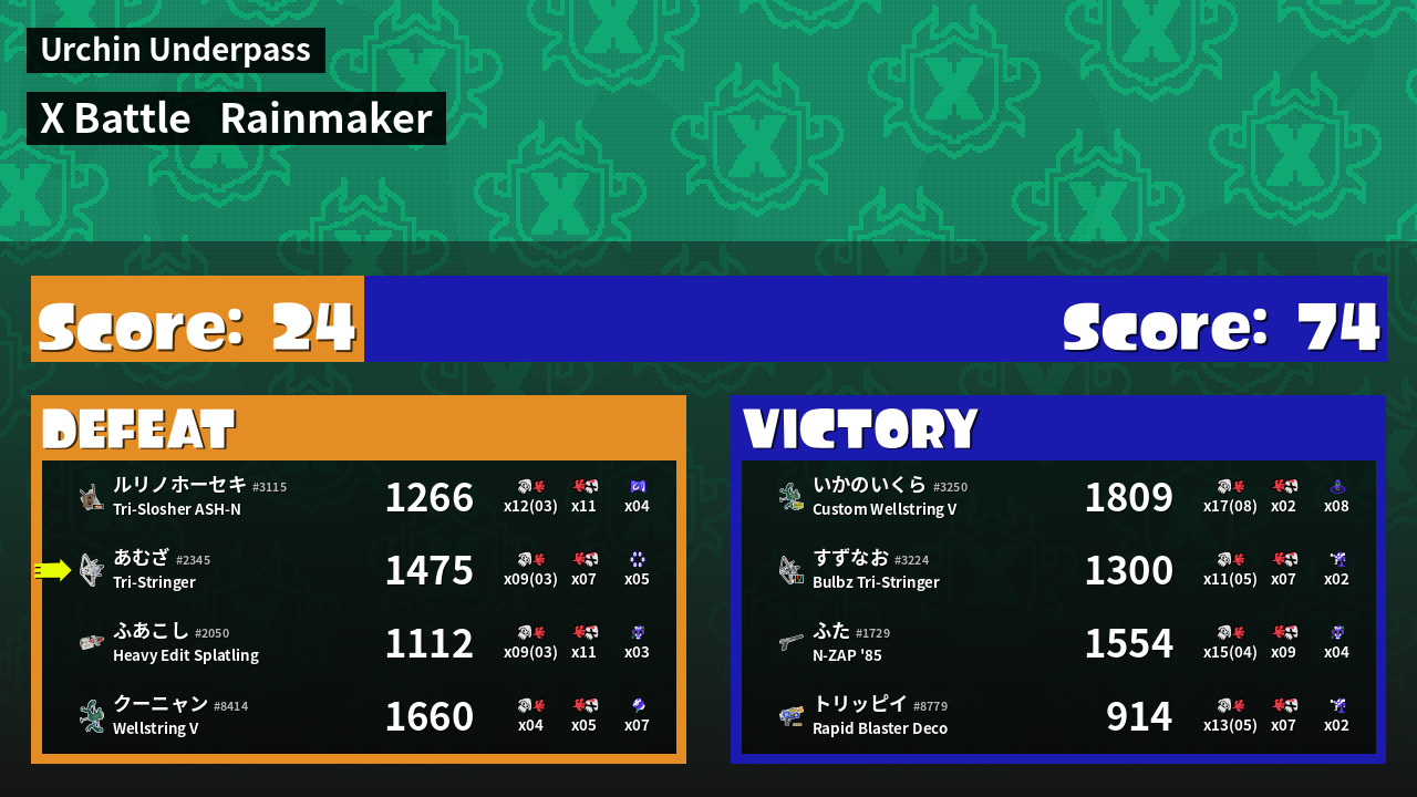 | Mode | Rainmaker - X Battle | ||