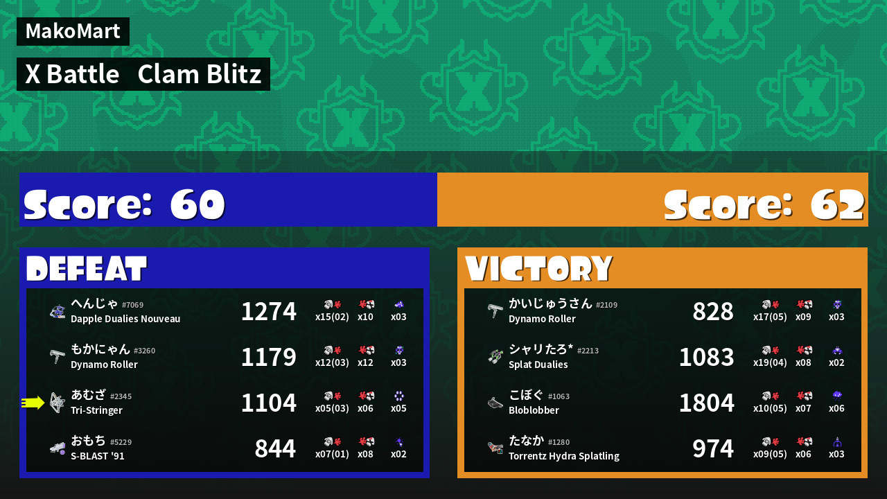 | Mode | Clam Blitz - X Battle | ||