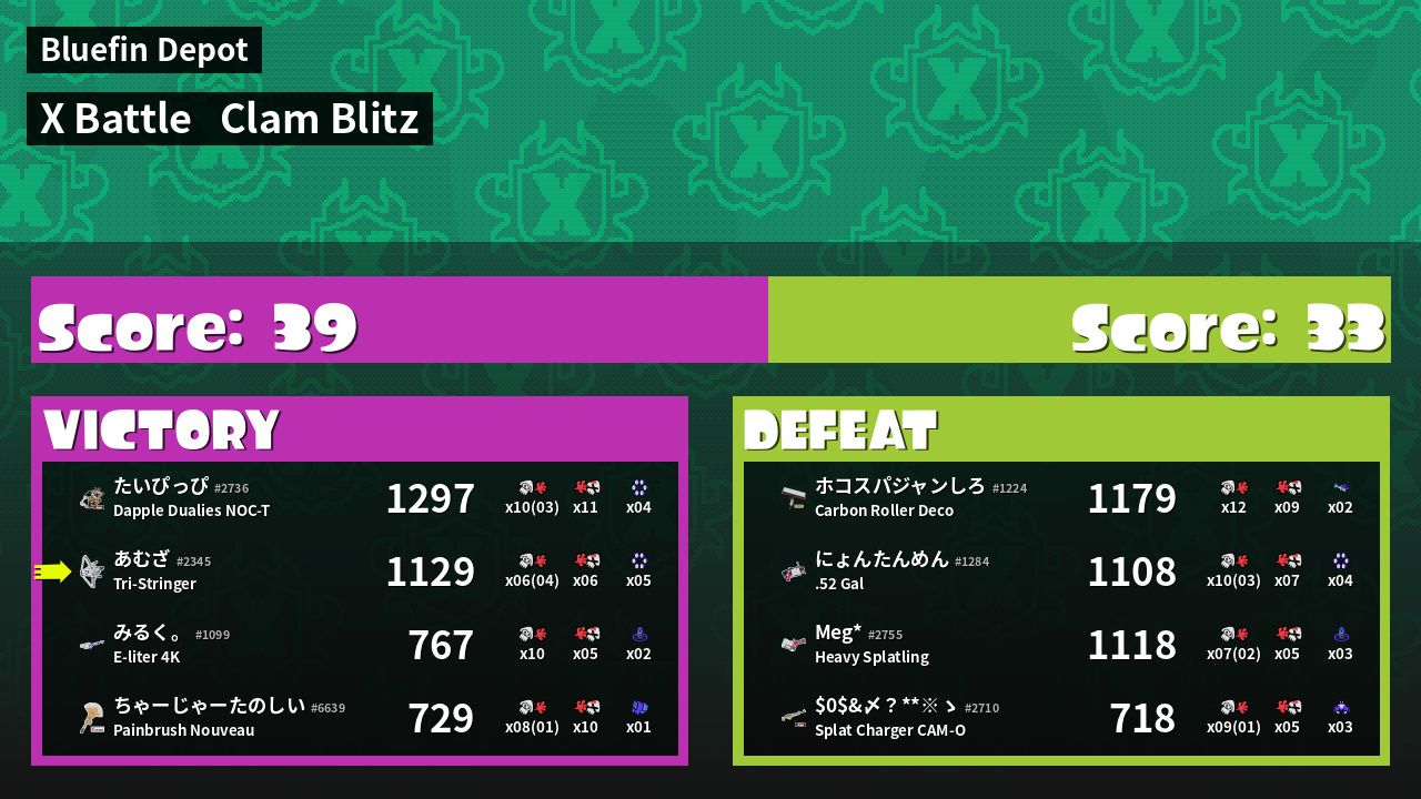 | Medals | #1 Score Booster #1 Clam Carrier #1 Splat Assister | ||