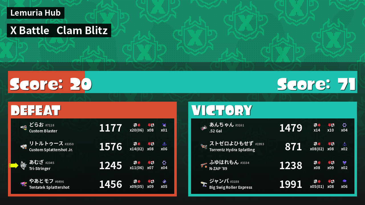 | Medals | #1 Clam Carrier #1 Splat Assister #1 Clam Stopper | ||
