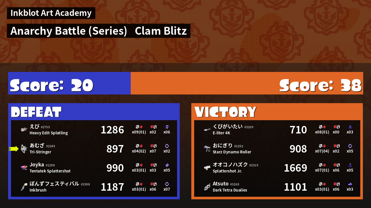 | Mode | Clam Blitz - Anarchy Battle (Series) | ||