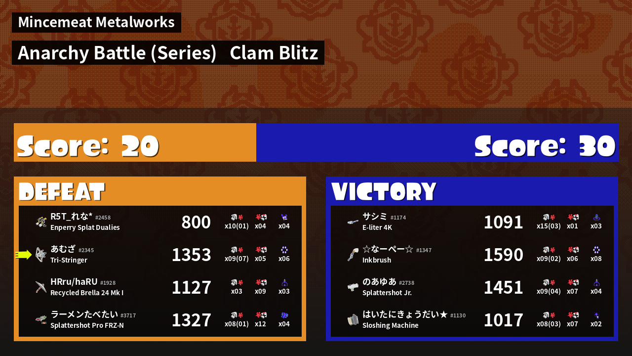 | Mode | Clam Blitz - Anarchy Battle (Series) | ||