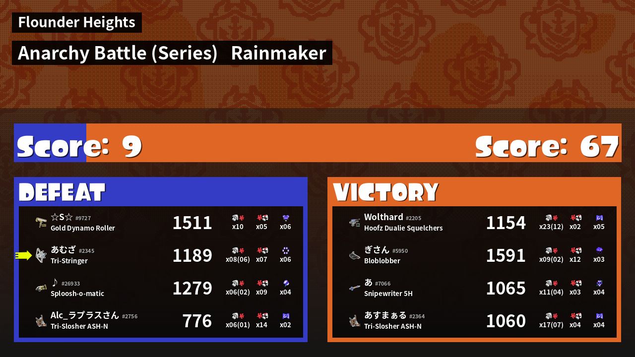| Medals | #1 Popular Target #1 Super Jump Spot #1 Splat Assister | ||