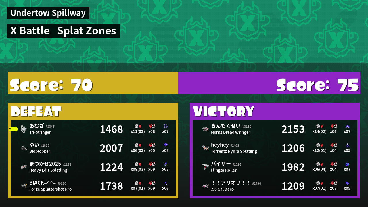| Mode | Splat Zones - X Battle | ||