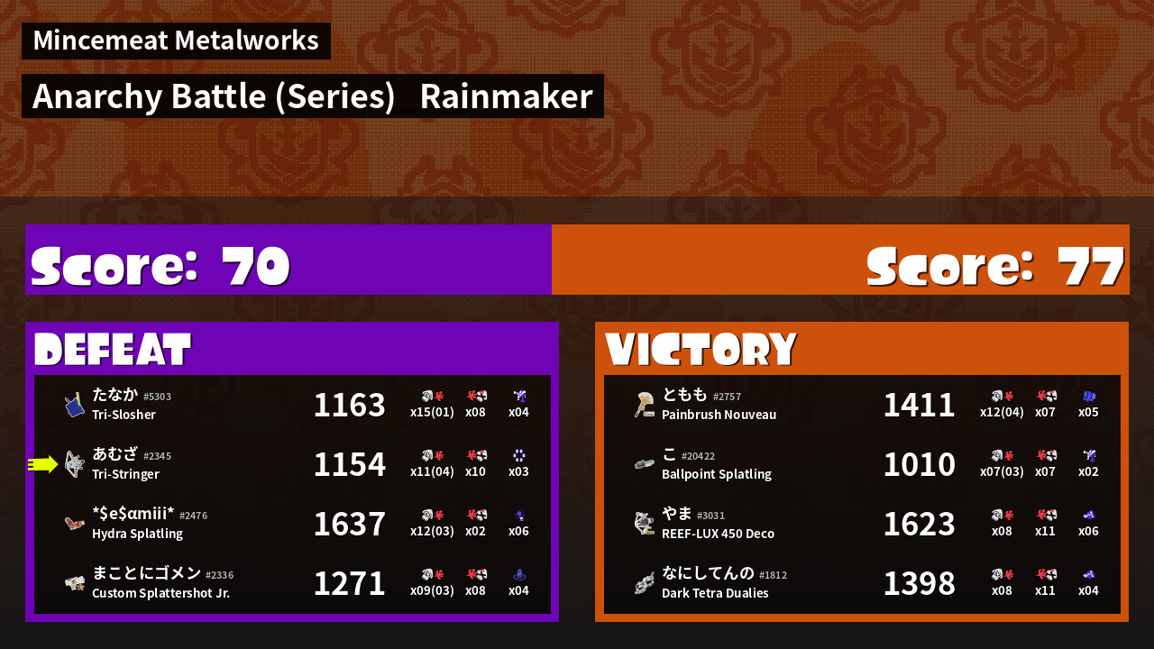 | Medals | #1 Score Booster Record-Score Setter #1 Splat Assister | ||