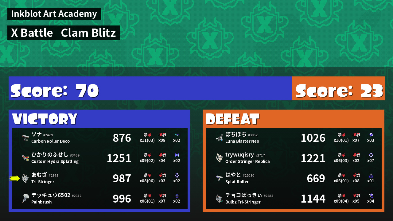 | Medals | #1 Clam Carrier #1 Splat Assister #1 Killer Wail 5.1 User | ||