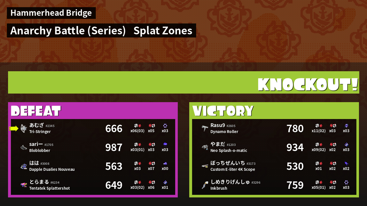 | Mode | Splat Zones - Anarchy Battle (Series) | ||