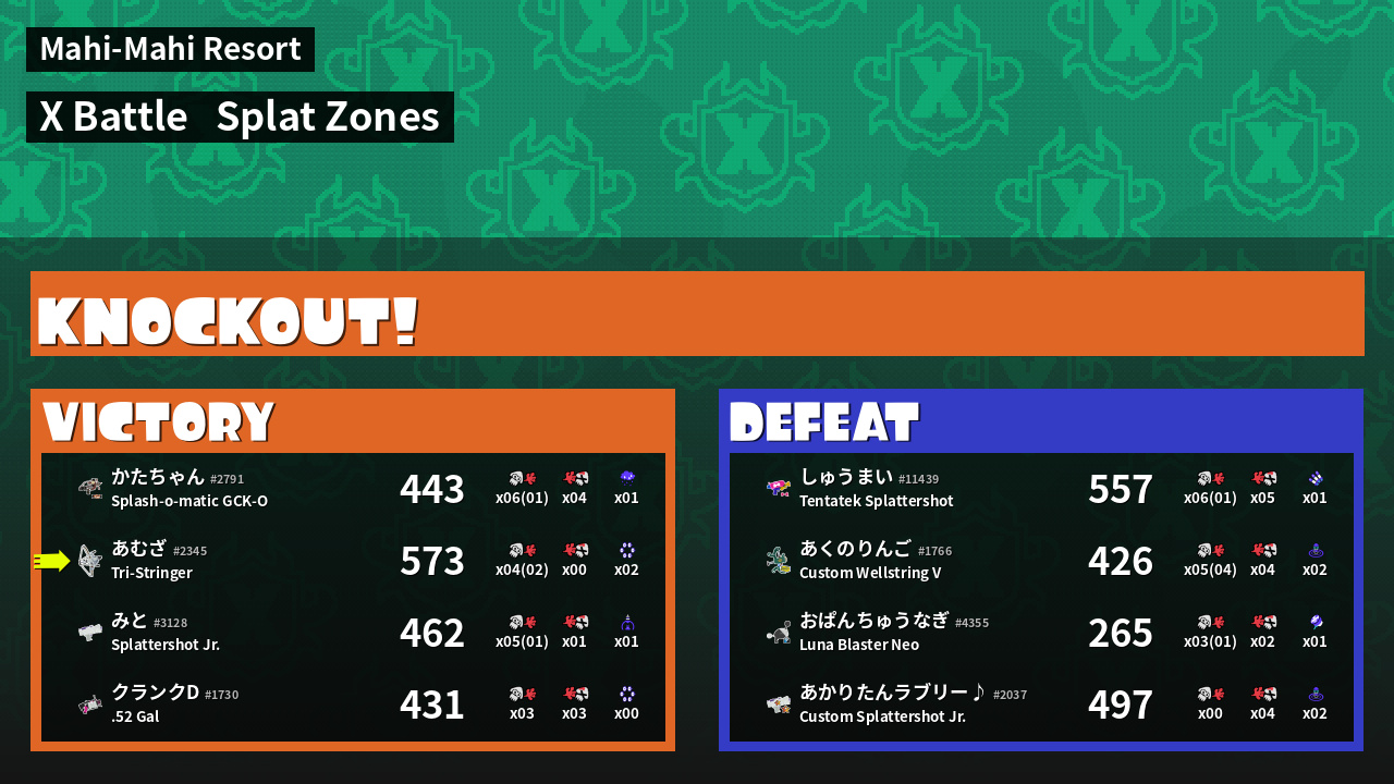 | Mode | Splat Zones - X Battle | ||
