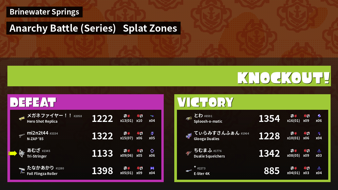 | Mode | Splat Zones - Anarchy Battle (Series) | ||