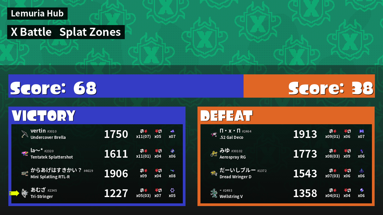 | Medals | #1 Super Jump Spot #1 Killer Wail 5.1 User #2 Splat Zone Guard | ||
