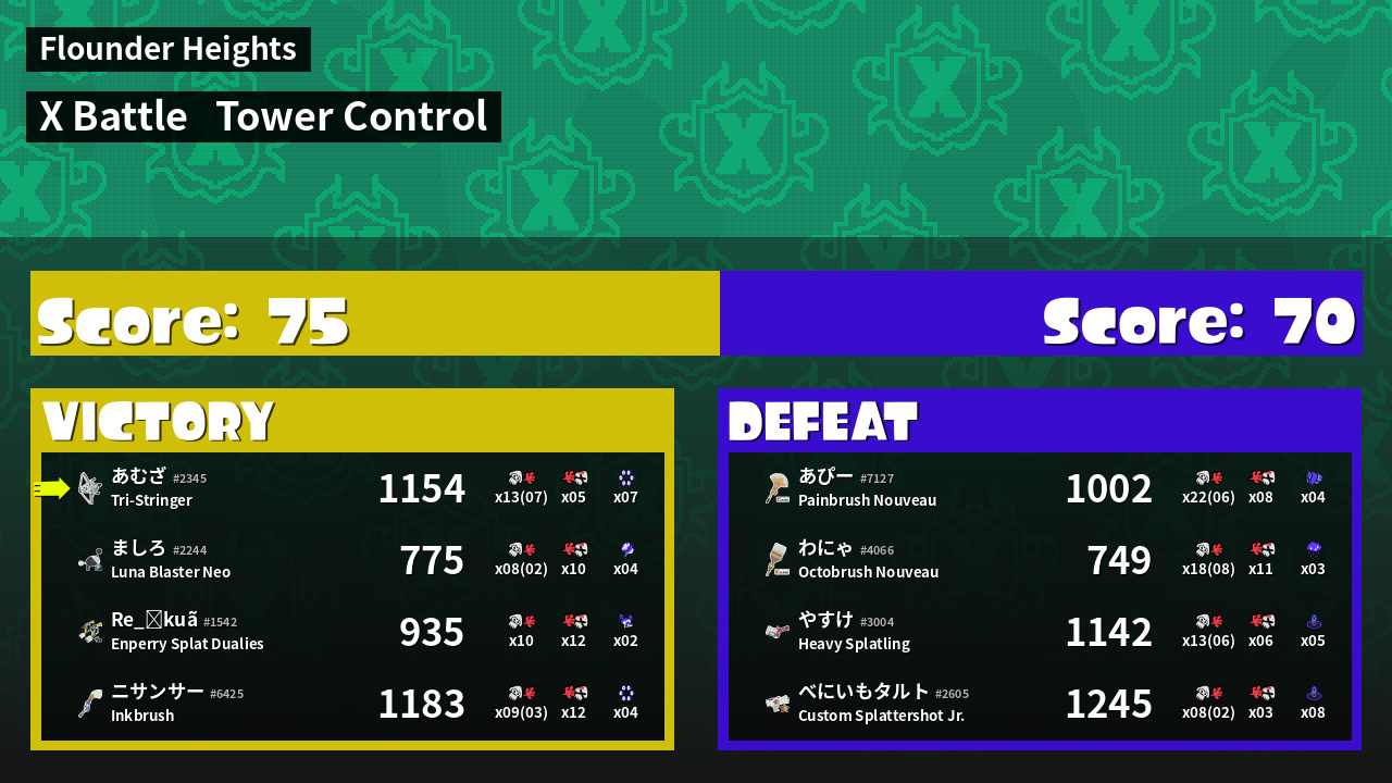 | Mode | Tower Control - X Battle | ||