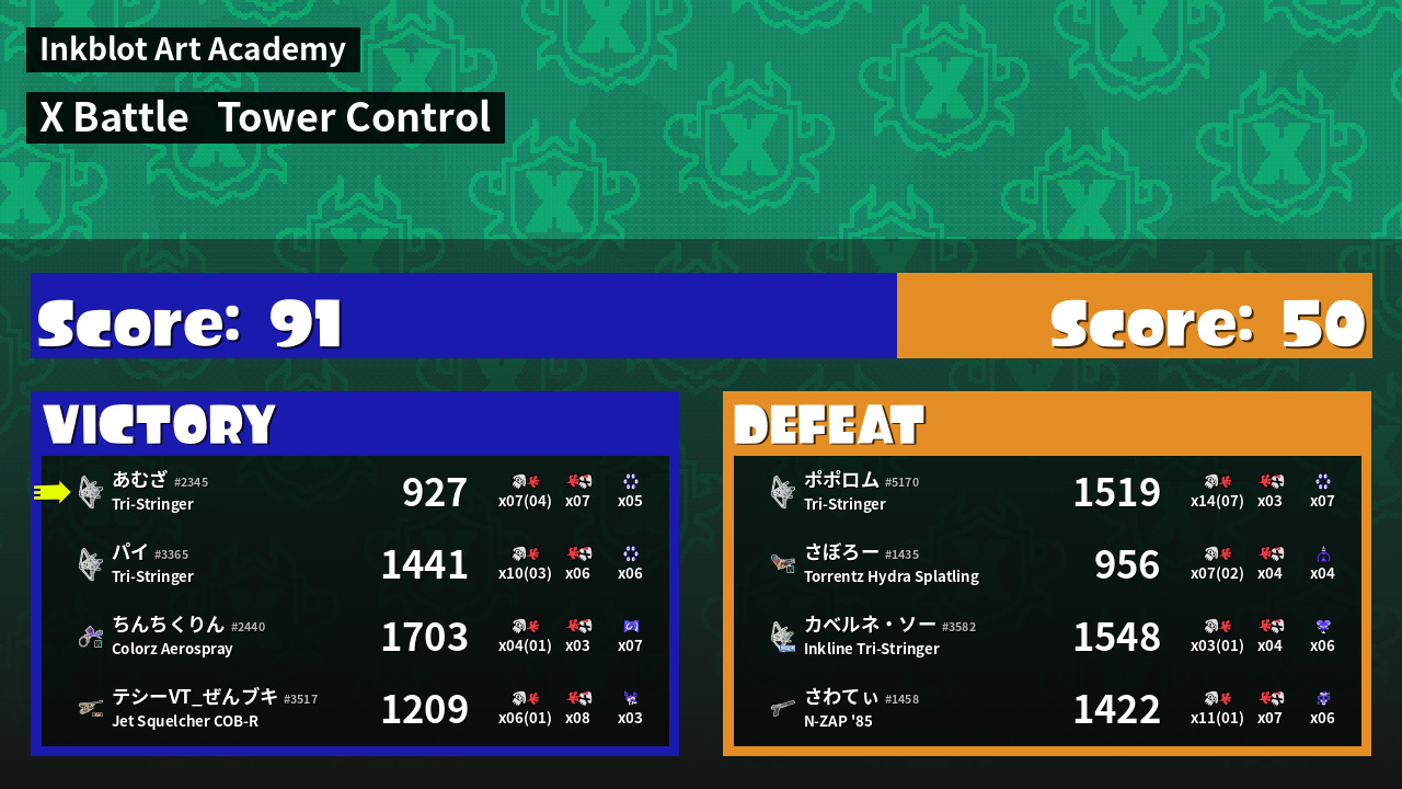 | Mode | Tower Control - X Battle | ||