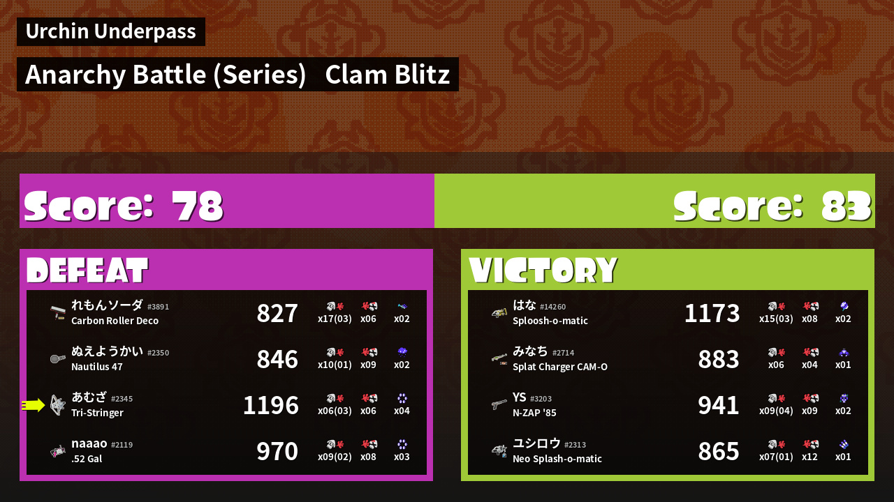 | Mode | Clam Blitz - Anarchy Battle (Series) | ||