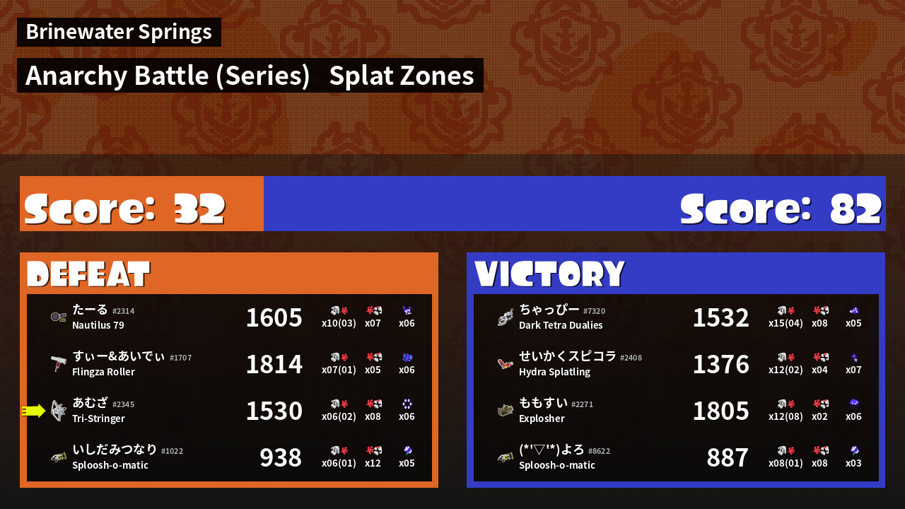 | Mode | Splat Zones - Anarchy Battle (Series) | ||
