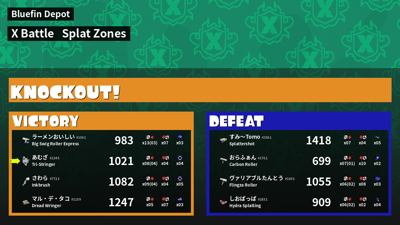 | Mode | Splat Zones - X Battle | ||
