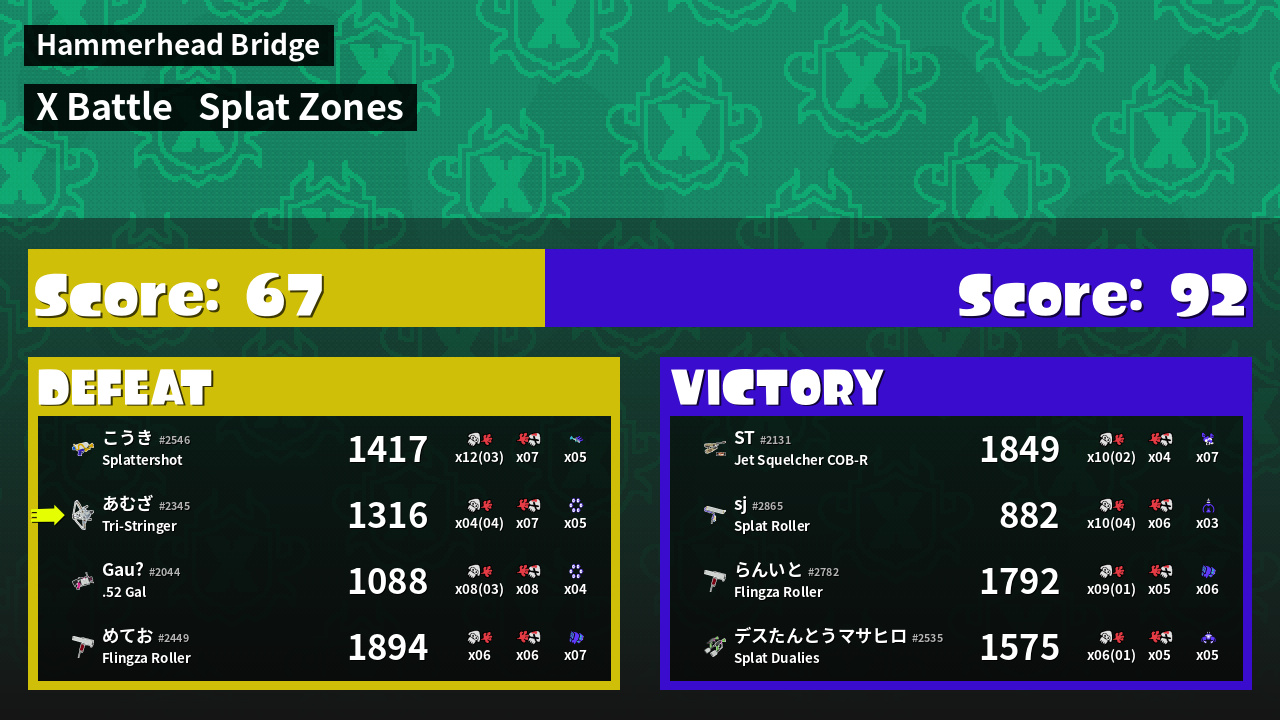| Medals | #1 Splat Zone Guard #1 Super Jump Spot #1 Splat Assister | ||